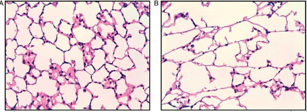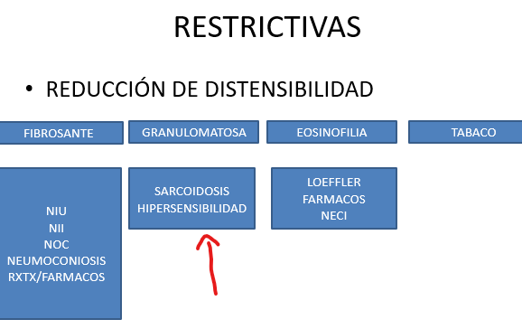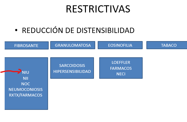 Reducción en la ampliación de la caja torácica, alteraciones del parénquima