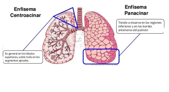 Son los px sopladores rosados- fumaron durante 50 años 3 cajetillas al día, los vemos flacos flacos, rositas y su oxigeno jalando. (aquí sería enfisema centroacinar)