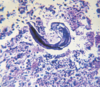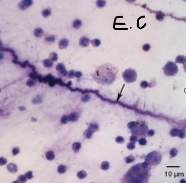 Tapones de moco que hacen espirales de Curschmann (foto)