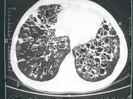 DILATACIONES DE BRONQUIOS Y BRONQUIOLOS, que generalmente tienen obstrucción más infección.
