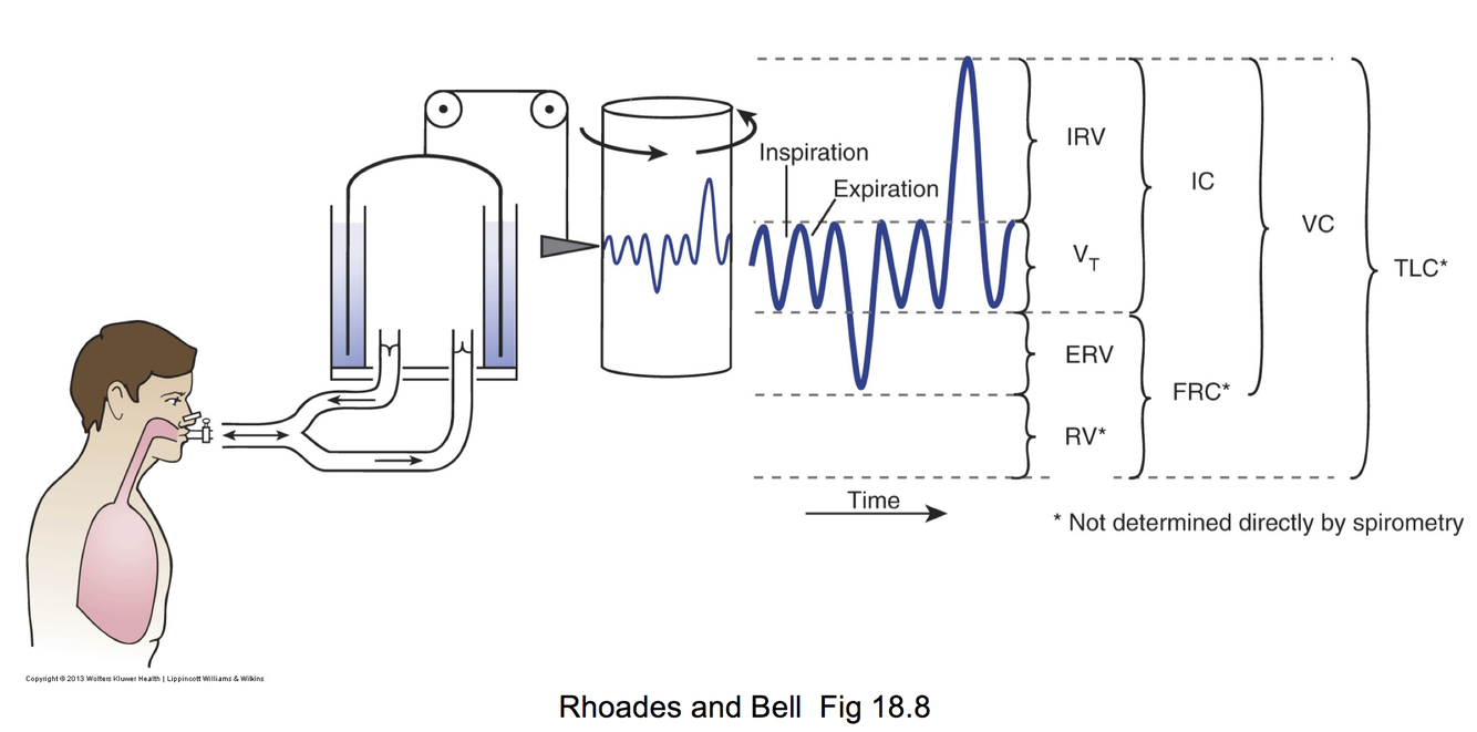 Forced vital capacity (FVC) = air expired as rapidly as possible after a maximal inspiration ⇒ ~ 5 L in healthy adult male