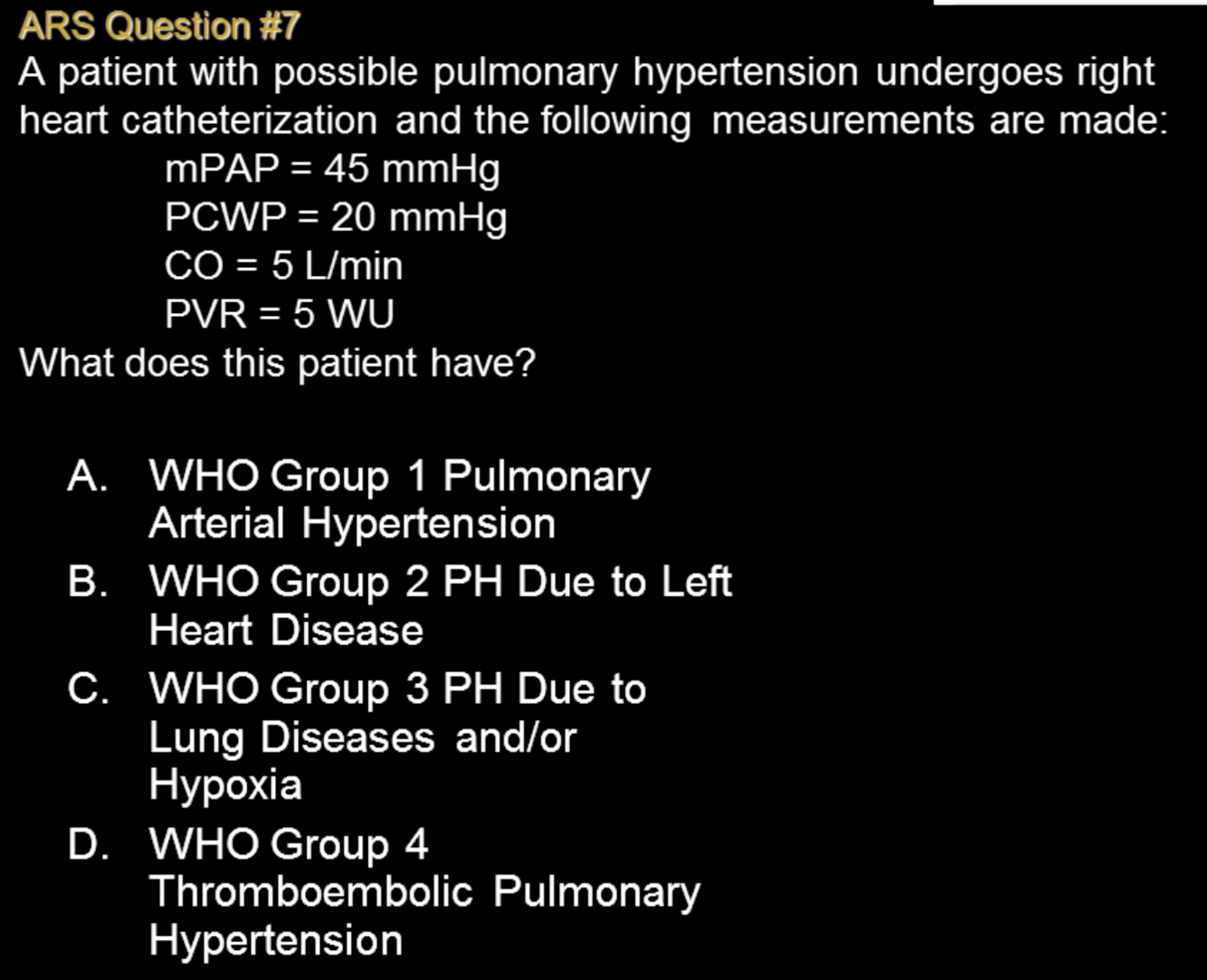B. WHO Group 2 Pulmonary Hypertension due to left heart disease (because PCWP is greater than 15 mmHg)