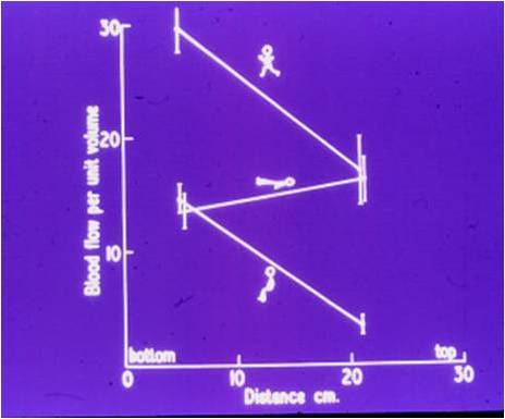 Blood flow in distance on lung with different postures