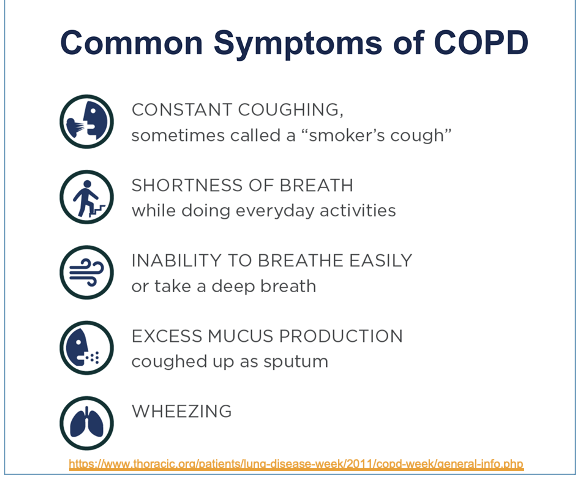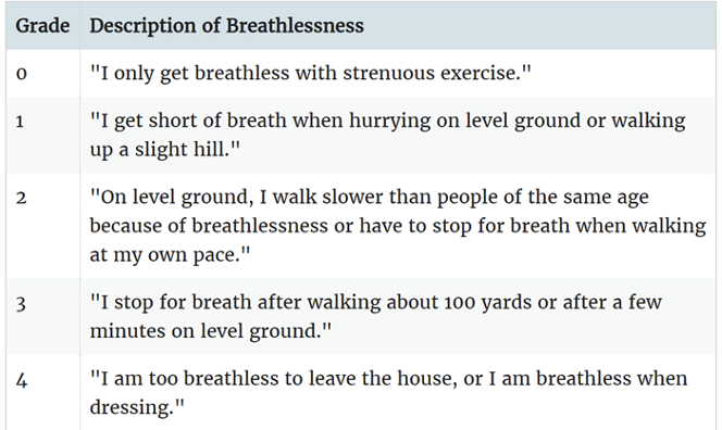 For dyspnea - usually with exertional activities / worsens over time and becomes apparent with lower-level ADL