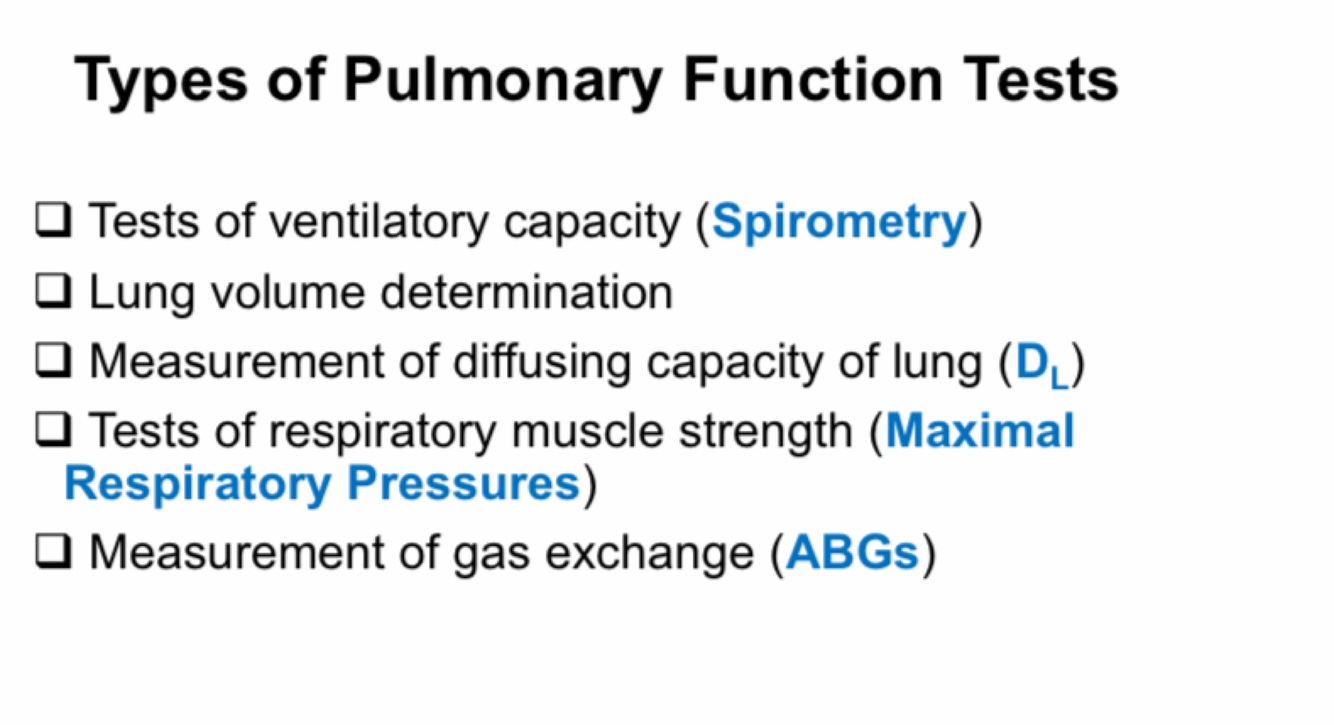 What are the types of pulmonary function tests?