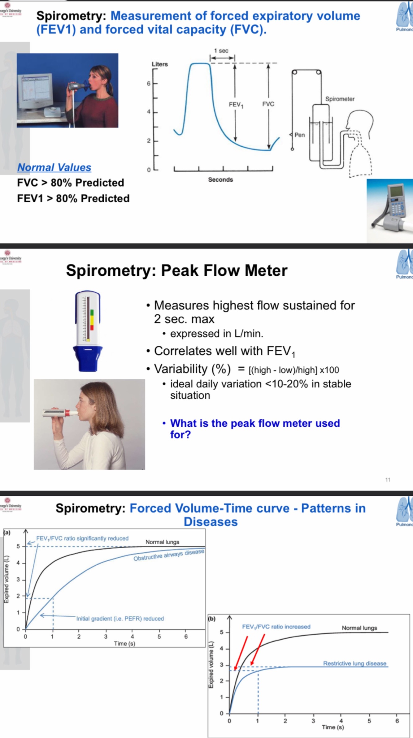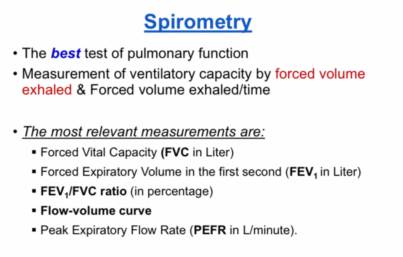Describe FVC, FEV1, & Peak flow meter