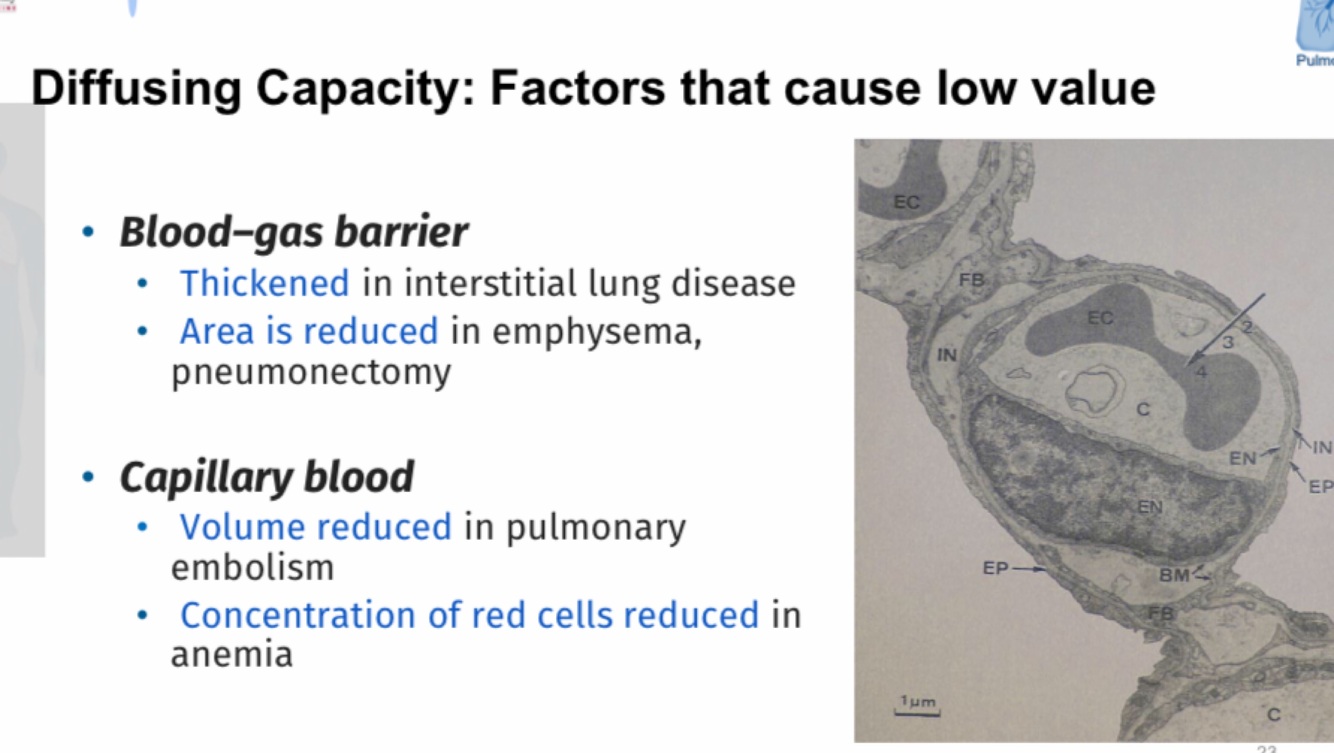 What factors cause low diffusing capacity?