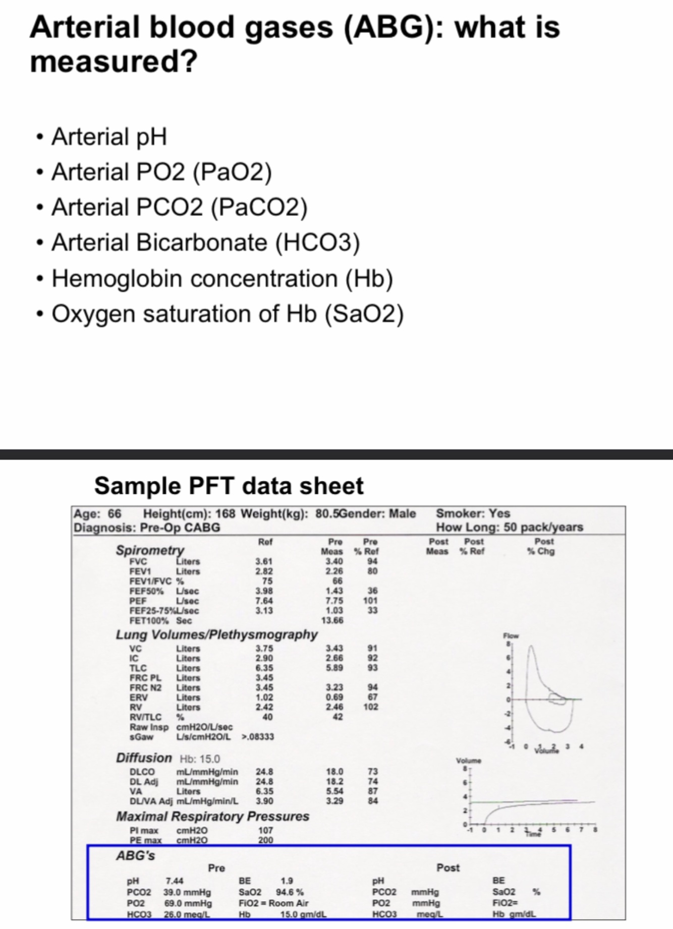 What is measured in arterial blood gas?