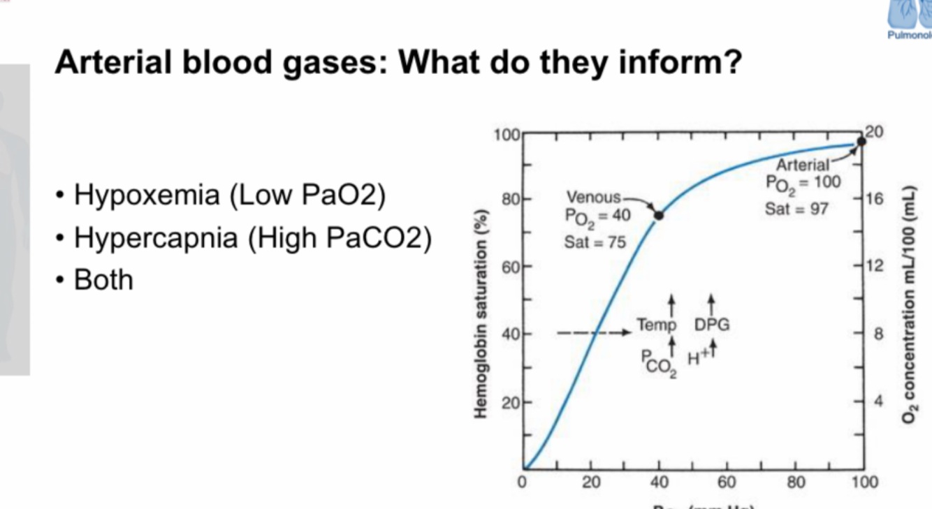 What does arterial blood gas inform?