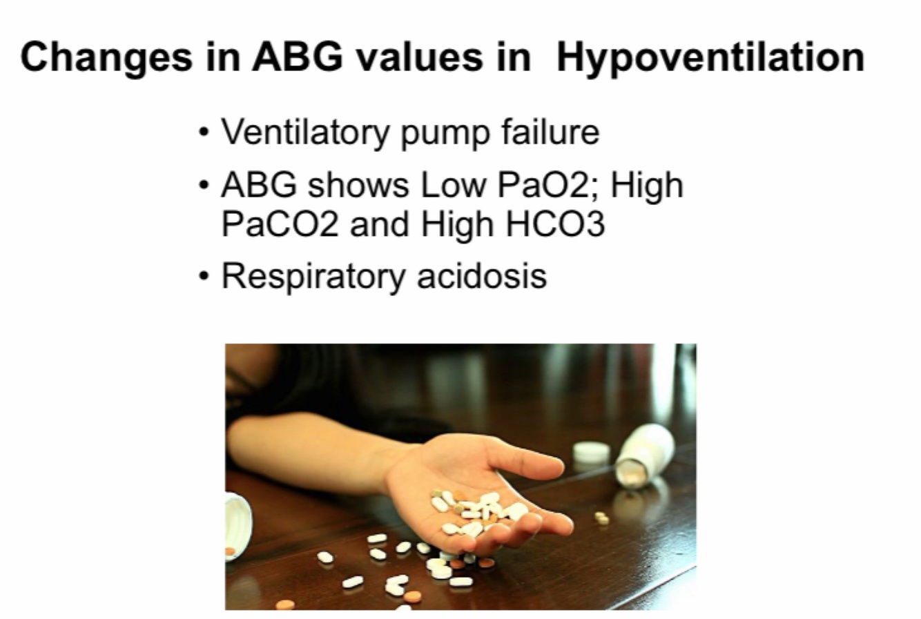 What are the changes in ABG values in hypoventilation?
