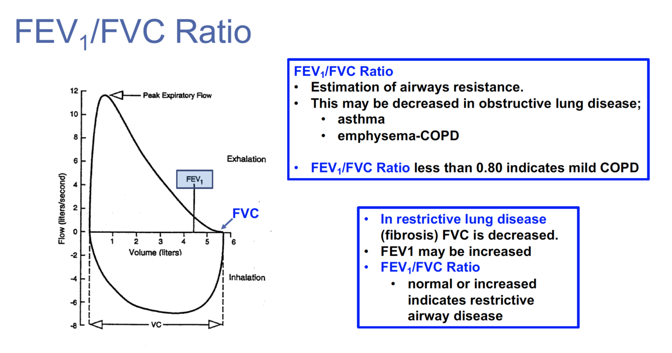 What values on spirometry would be altered in a person with obstructive airway disease?