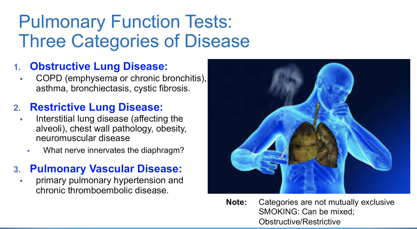 What are the 3 categories of lung diseases we should be familiar with?