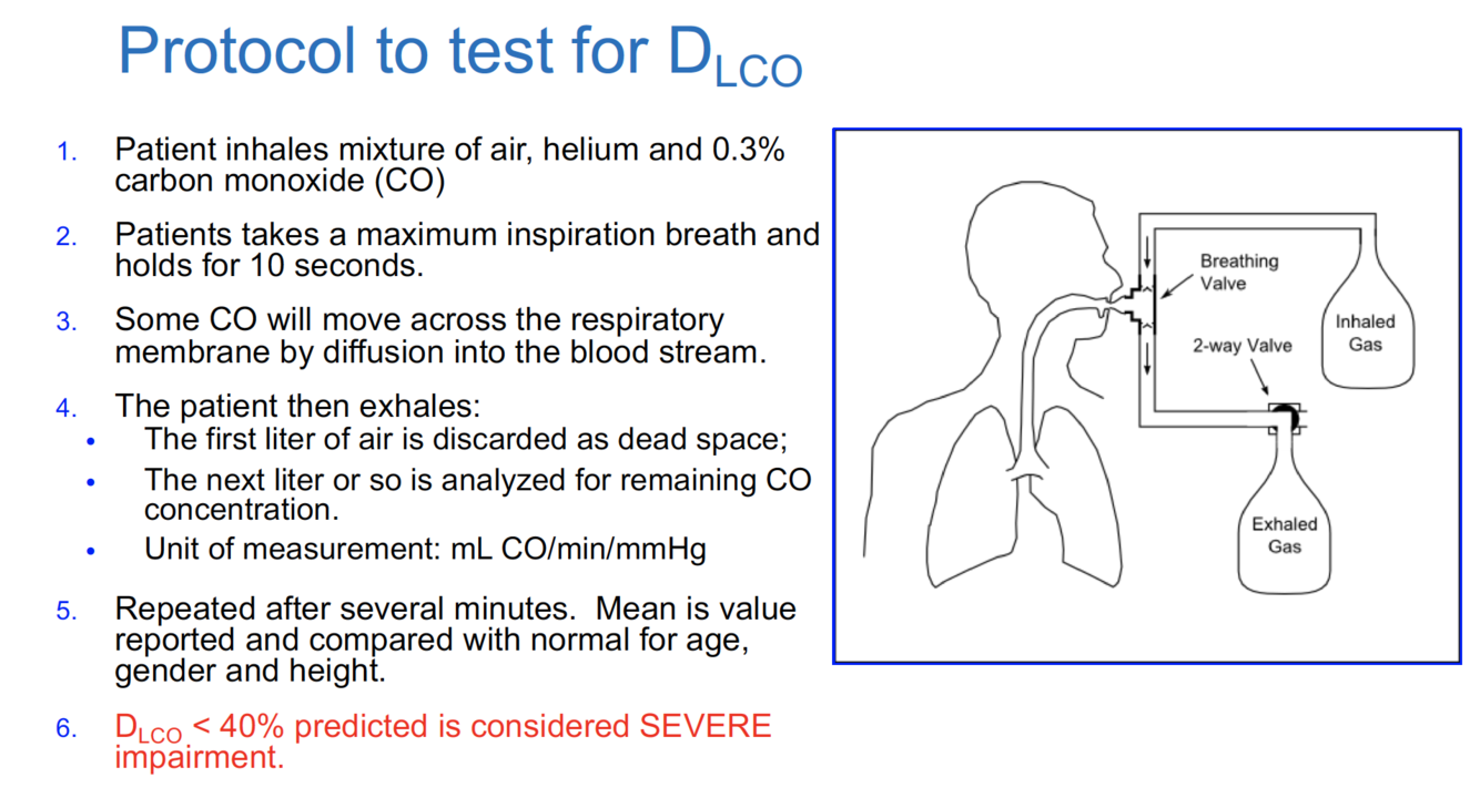 Obstructive disease –> a problem occuring at the level of the respiratory membrane that impairs the ability of CO to diffuse from the blood into the alveoli (fibrosis, surface area, etc.)