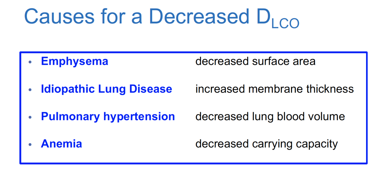 What could cause a decreased diffusion capacity for CO?