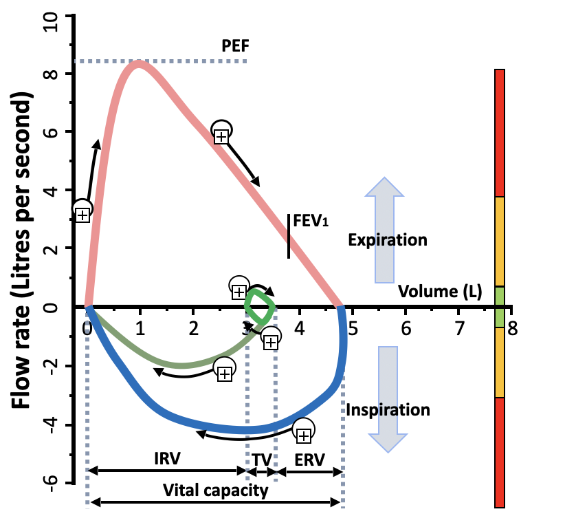 What is measured on a flow-volume loop?