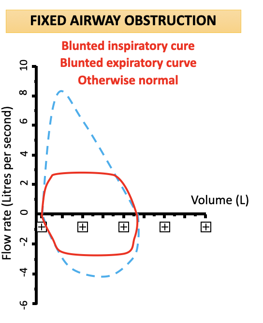 What does a flow-volume loop of a fixed airway obstruction look like?
