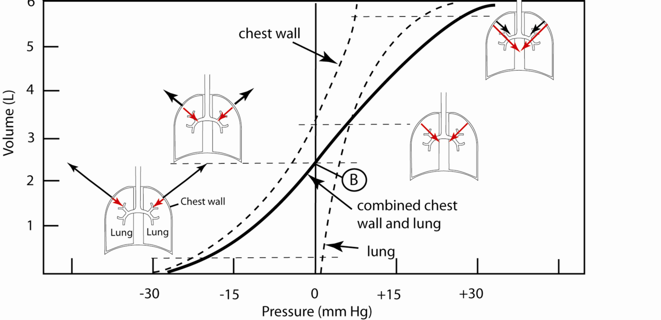 *chest wall: at high volumes, the lung recoils inward, producing a positive contribution to Prs