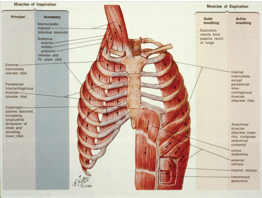 Accessory: SCM, scalenes, Pec major, Pec minor, SA