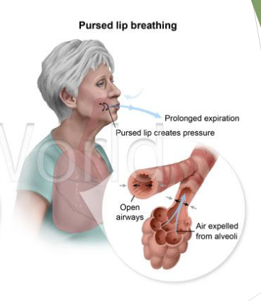 Expected outcomes of pursed-lip breathing include decr. RR & dyspnea, incr. TV & activity tolerance, & prevention of airway collapse in emphysema pts. What are 2 more expected outcomes?