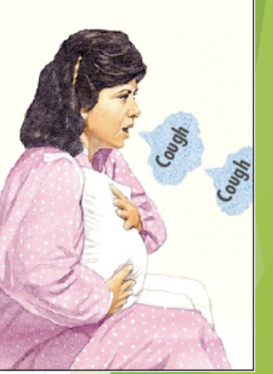 Post-surgical pts may need to splint chest/abdomen by applying pressure over incision w/ pillow or soft blanket roll
