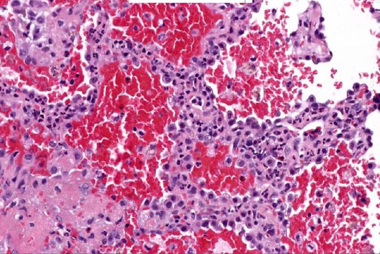Evidence of diffuse pulmonary hemorrhage