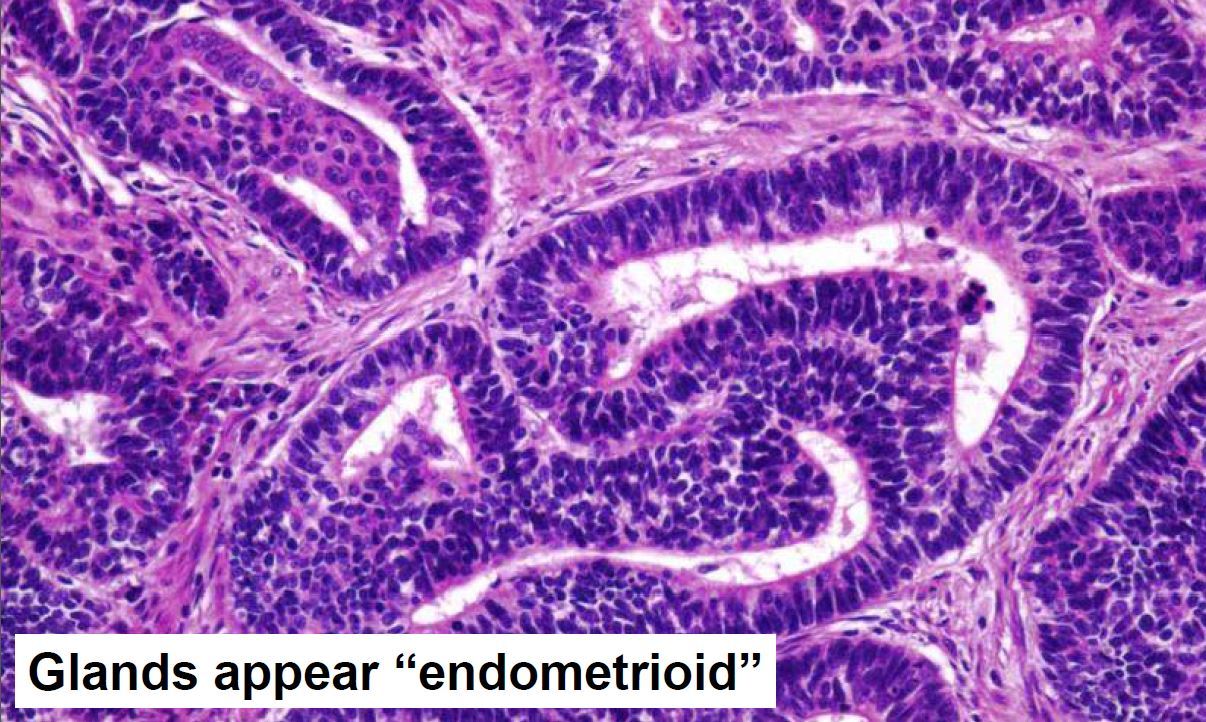 Primitive glands and stroma, resembles fetal lung