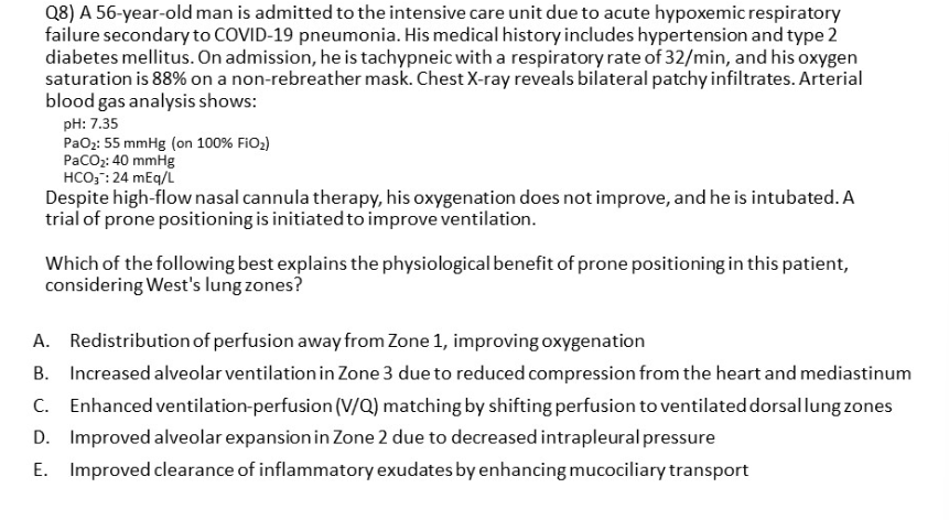 Hypoxia causes vasoconstriction. Pulmonary resistance is much lower than systemic resistance. Right and left ventricular output have to match. Blood supply is greater at the base than the apex of the lung. The nitrogen gas lead reduced the partial pressure of O2 in the lab causing hypoxic vasoconstriction. Because of an existing compromise in the vascular system (hypertension) the patient also developed pulmonary edema.