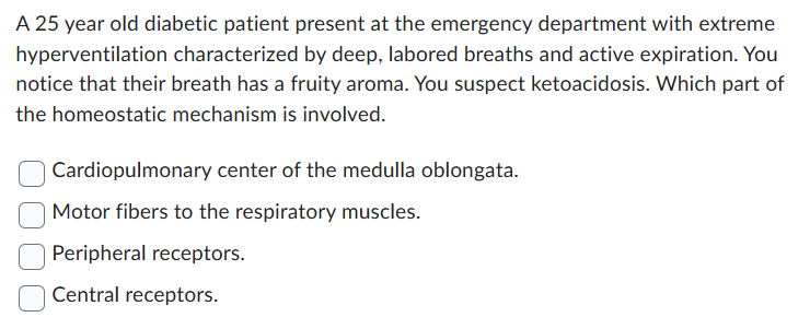 Kussmaul breathing is caused by metabolic acidosis. This will act on the peripheral receptors.