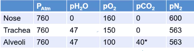What is the effective atmospheric pressure of air once it reaches the alveoli, since it gets warmed and humidified in the body?