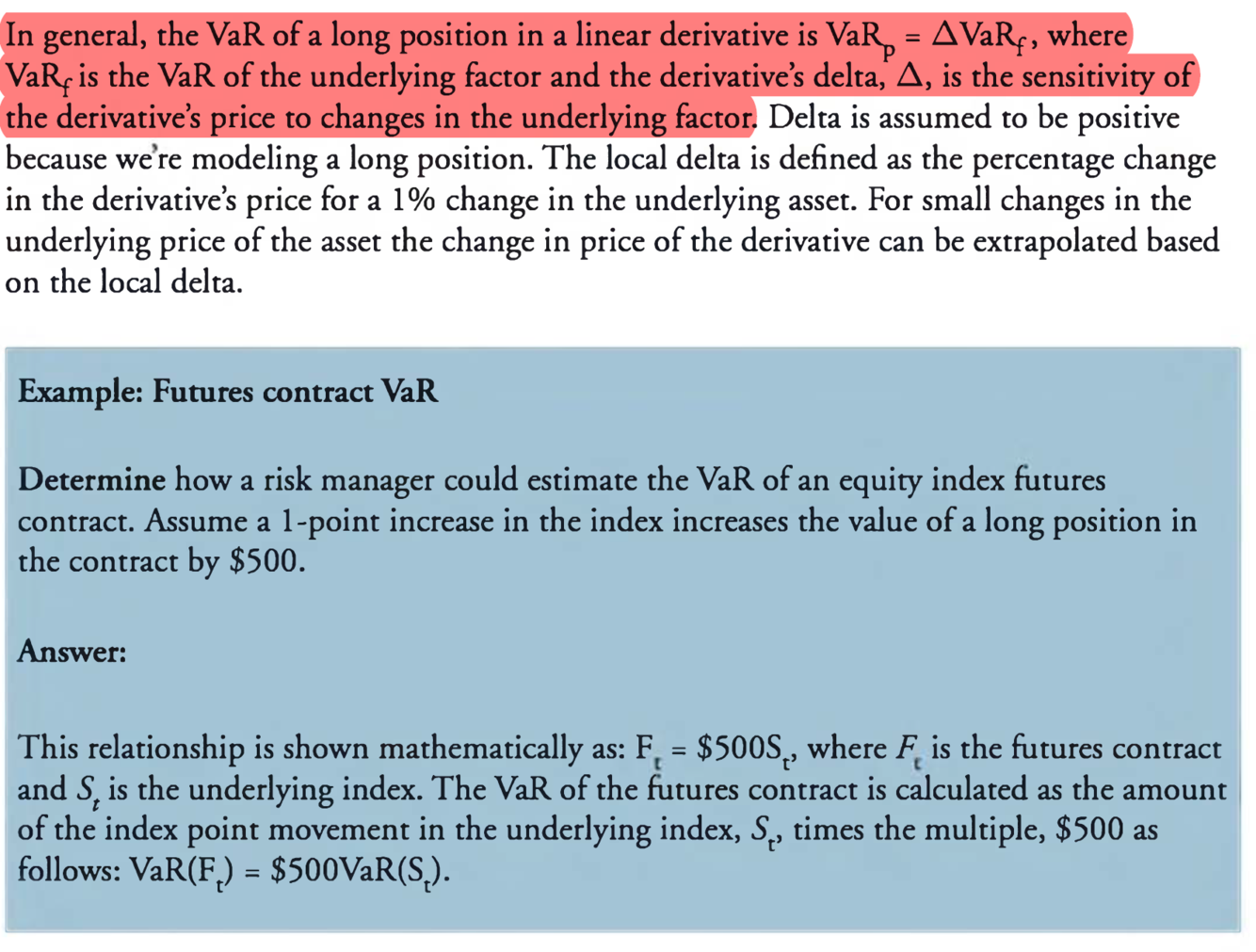 Describe and calculate VaR for linear derivatives