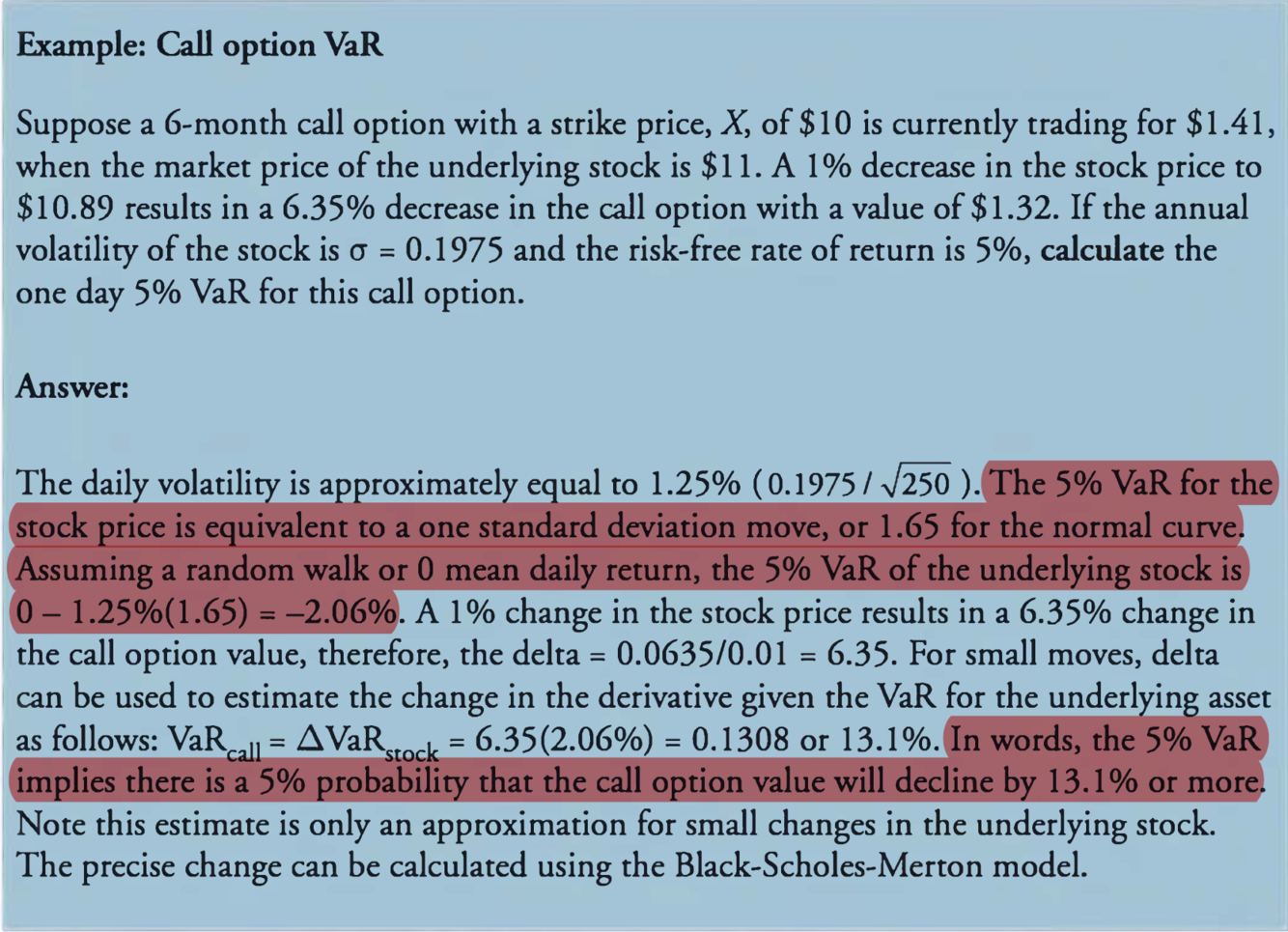 calculate the VaR for non-linear derivative(the delta-normal approach)