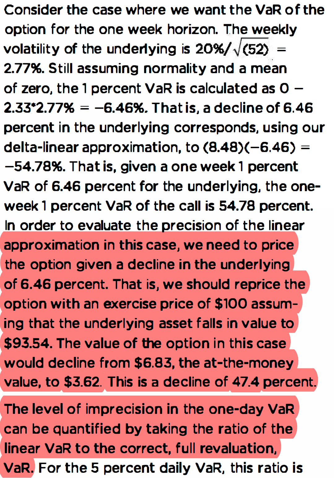 the problem of calculate the VaR from non-linear derivative using linear approximation