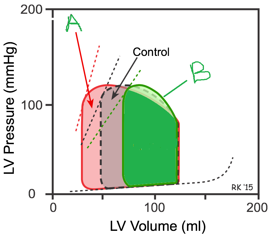 Identify Red arrow as preload, afterload or contractility (increased or decreased)