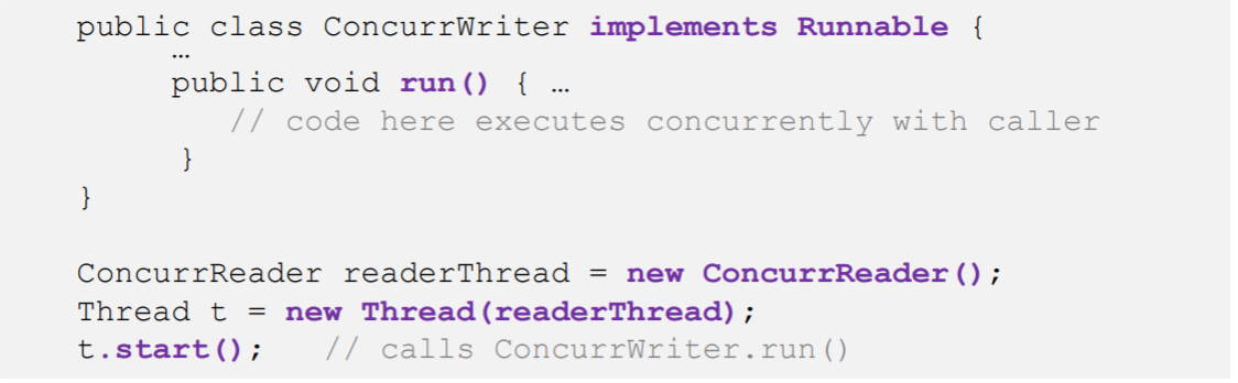 Runnable: Once we call start() on the new thread object, it becomes eligible for execution and the system can start scheduling the thread as it wishes.