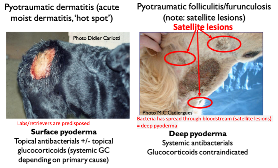How does treatment for these 2 causes of pyoderma differ?