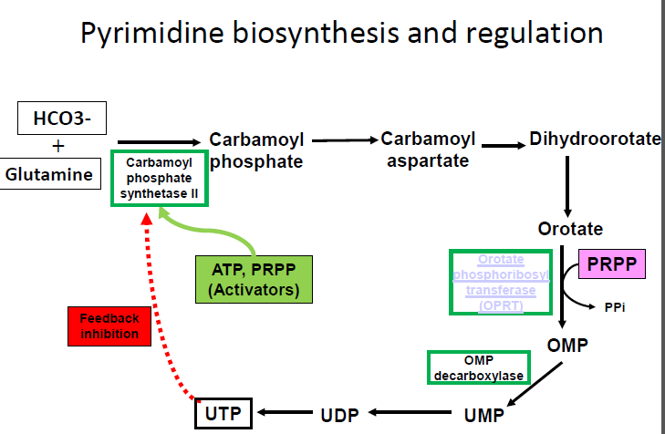 describe the regulation of pyrimidine synthesis