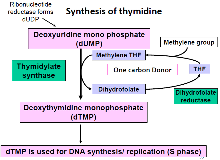 which anticancer drugs can be used in the thymidine synthesis pathway?
