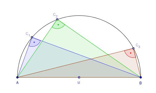 Egal wo du den Punkt C auf dem Kreisbogen hinsetzt, es ist immer ein 90°-Winkel.
