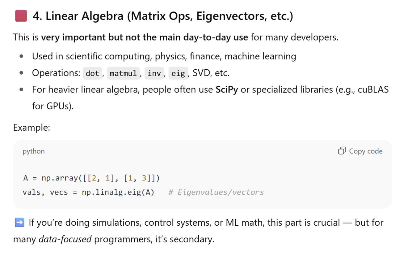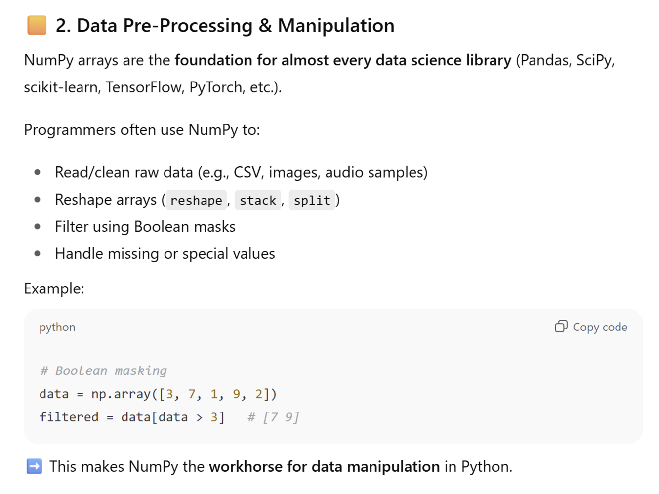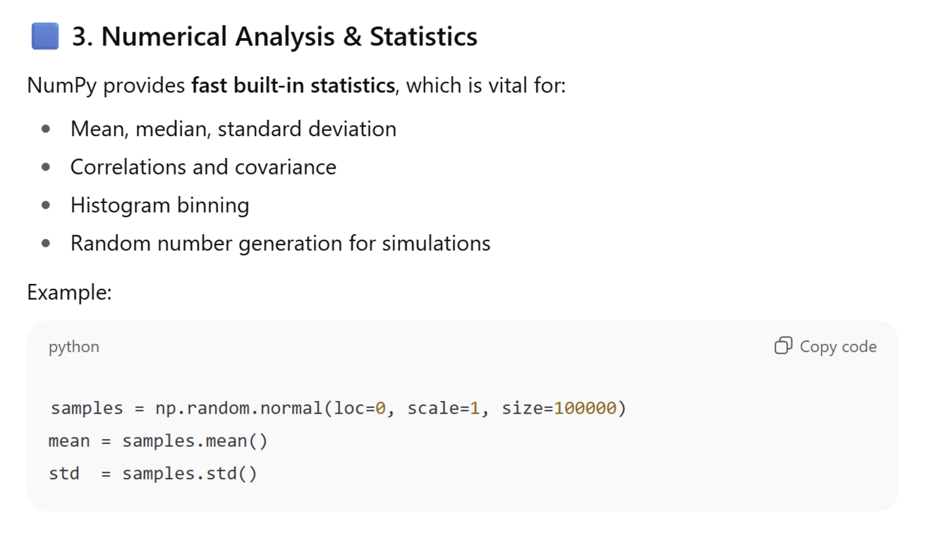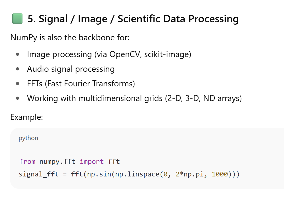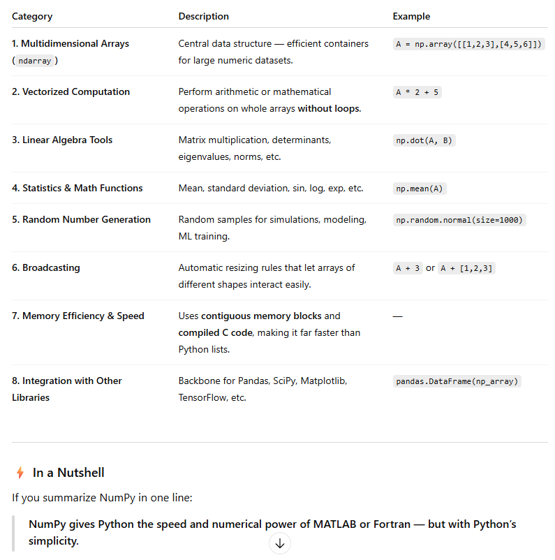 It forms the foundation of most data science, AI, and scientific libraries in Python (such as Pandas, SciPy, scikit-learn, TensorFlow, and PyTorch)