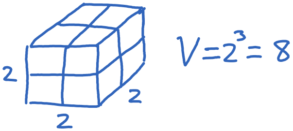 (This is because a cube with 2 units on each side has an area of 23)