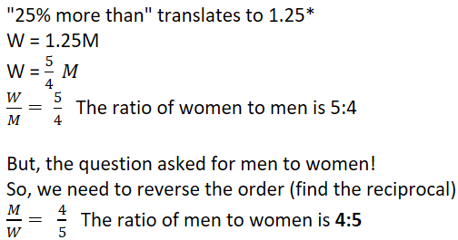If there are 25% more women than men, what is the ratio of men to women?