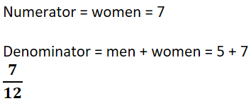 If the ratio of men to women is 5:7, what fraction of the total are women?