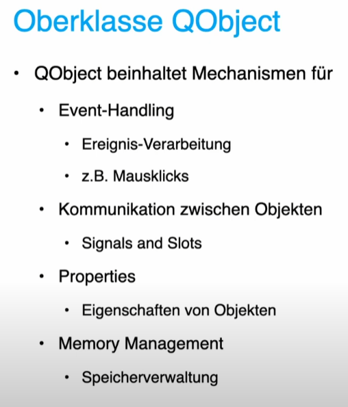 Was beinhaltet die Oberklasse QObject?