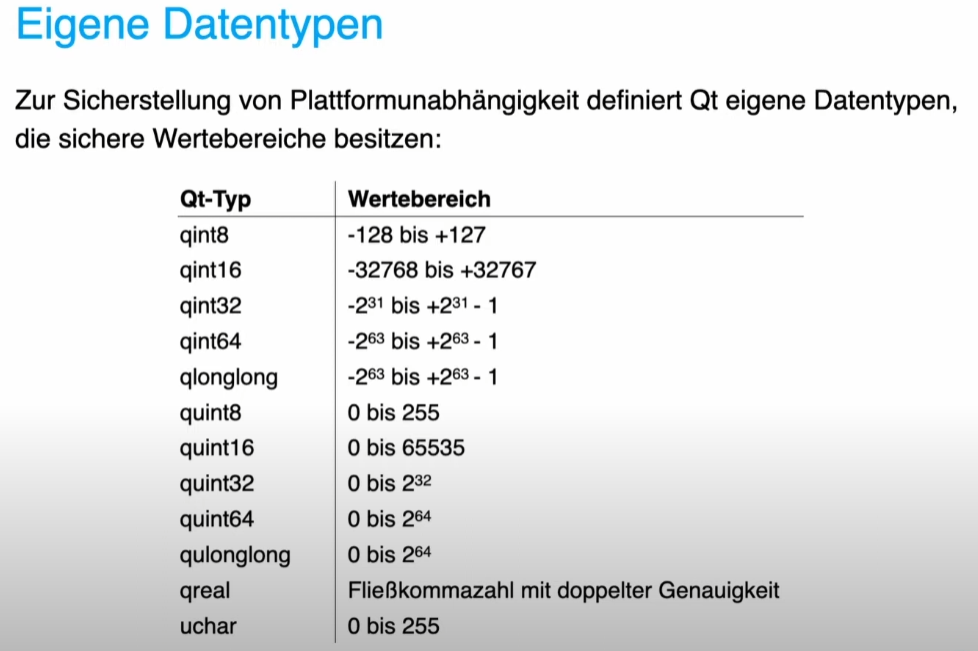 Was sind die Qt eigenen Datentypen und wofür werden sie benutzt?
