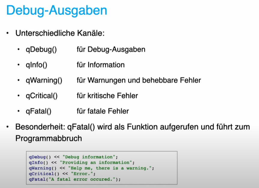 Welche Kanäle gibt es für Debug ausgaben?