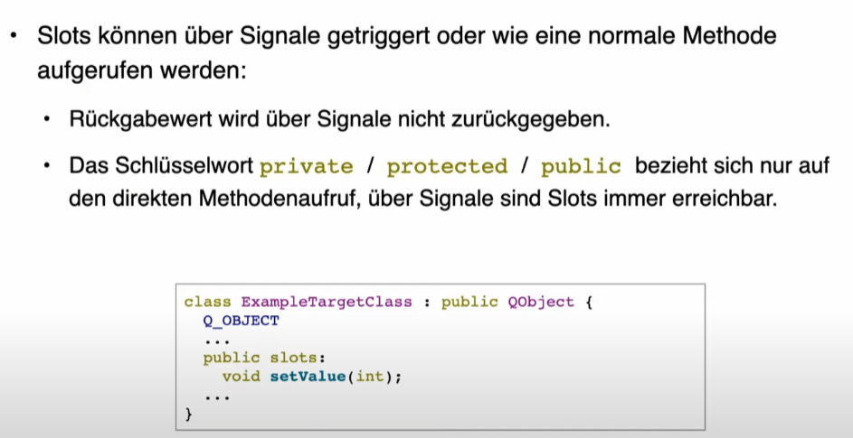 Was muss eine Klasse erfüllen um Signale und Slots implementieren zu können?