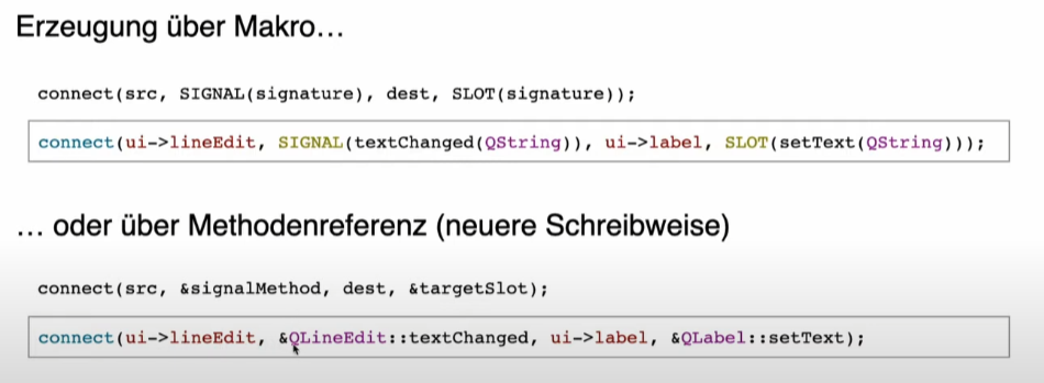 Wie erzeugt man Connections zwischen Signals und Slots?