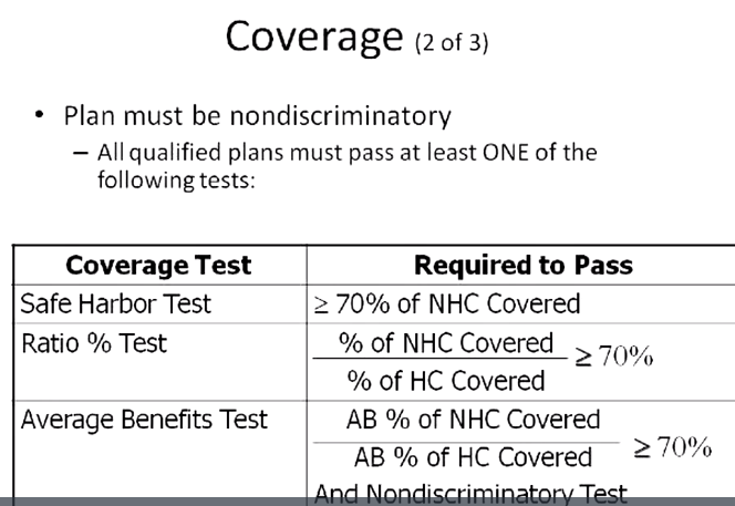 Qualified Plans - Coverage Tests (must pass at least one) and also pass the 50/40 test