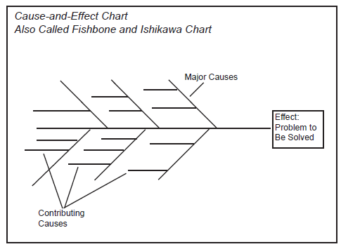 Used to identify the root causes or contributors to a problem, error, or defect. The problem statement is the effect and the possible contributing factors are the causes. For example, a failure in a system integration test could be due to Improper coding Unskilled coder Inappropriate environment Inappropriate test script Insufficient bandwidth The preceding are just a few examples. And each cause can be further explored for a more elaborate cause-and-effect diagram, also known as a “fishbone” diagram (because when drawn, it looks like a fish) or an “Ishikawa” diagram (named for the person who developed it).