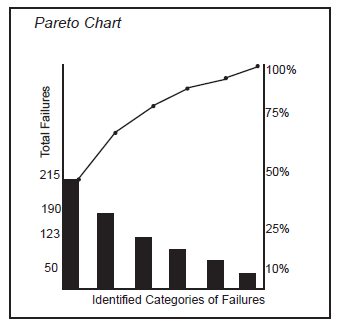 A vertical bar chart that creates a graphic display of events (such as causes of defects or types of defects) in descending order. The objective is to rank problems based on the frequency of occurrence to determine the order in which to resolve them.